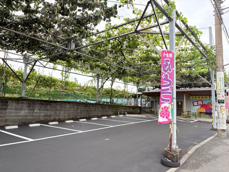 綾瀬市へと向かうバス通りには果樹園もありますね。今の季節はブドウと柿かな?