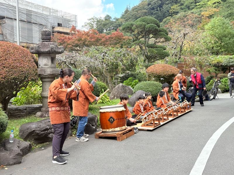 出発式が行われ太鼓や笛、