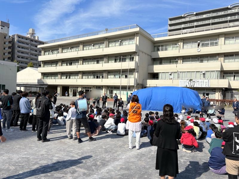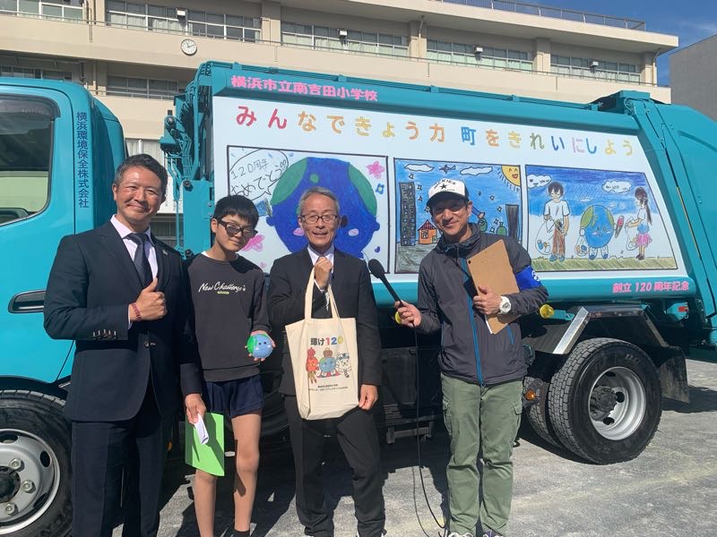 南吉田小学校の環境美化委員長山田くん(中央左)