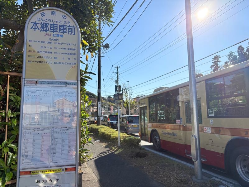 港南台駅から神奈中バスに乗って本郷車庫前バス停下車。