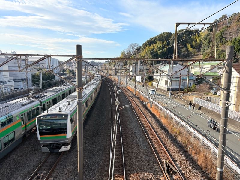 宝蔵院からJR線にかかる跨線橋を渡り向かうは来迎寺!