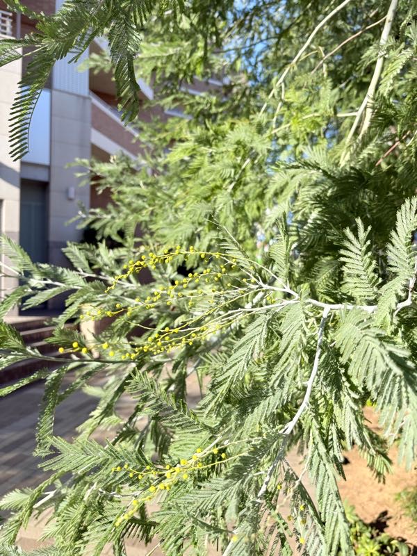 春を告げる花とも言われるミモザ、小さいけれど花芽がつきはじめていましたよ。