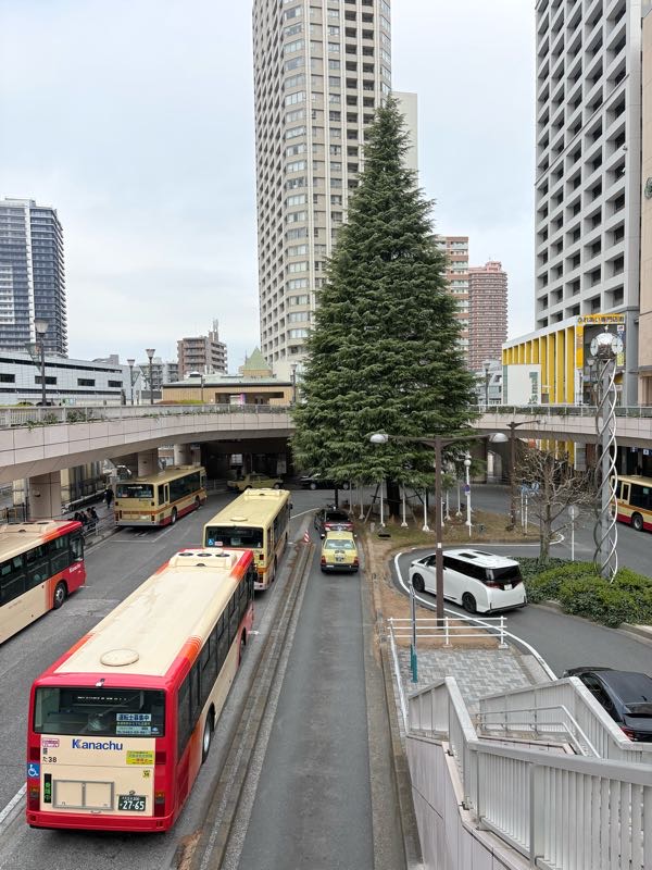 駅北口側、ペデストリアンデッキからパシャリ☆ヒマラヤスギが駅前のシンボルツリー!それにしてももう少し日差しが欲しいですね。