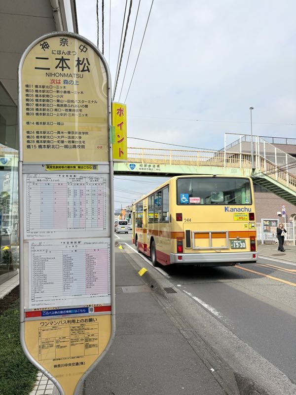 北口から三ケ木行きのバスにのり二本松のバス停を下車しました。