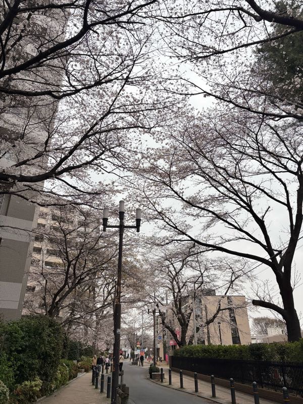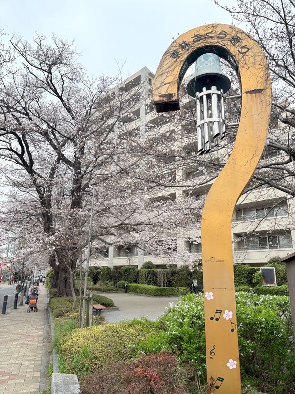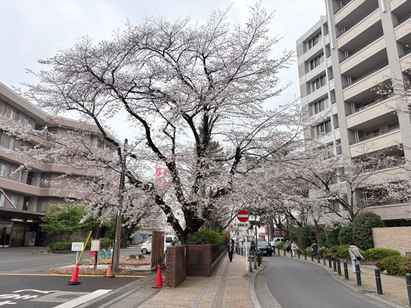 小田急線の東林間駅東口からすぐの東林さくら通りに来ました。さがみ林間病院前の通りが桜の名所。