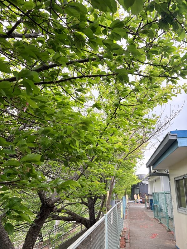 駅裏の河津桜はすっかり葉桜に。
