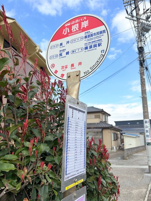 三崎口駅から小根岸のバス停へ。
