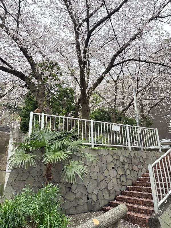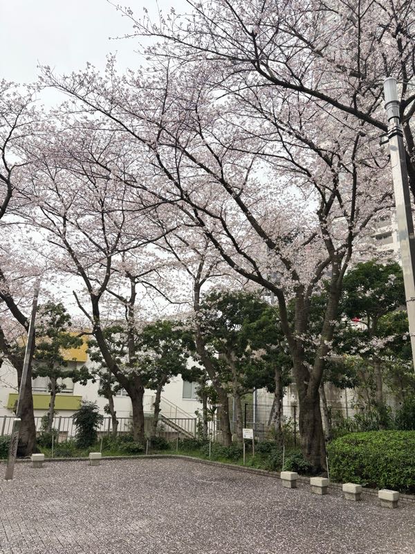 横のポケットパークは桜が楽しめる場所!